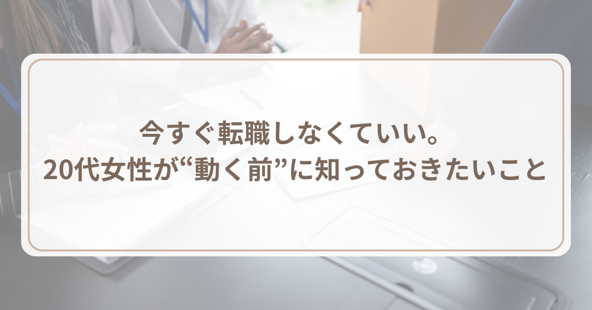 今すぐ転職しなくていい。20代女性が“動く前”に知っておきたいこと